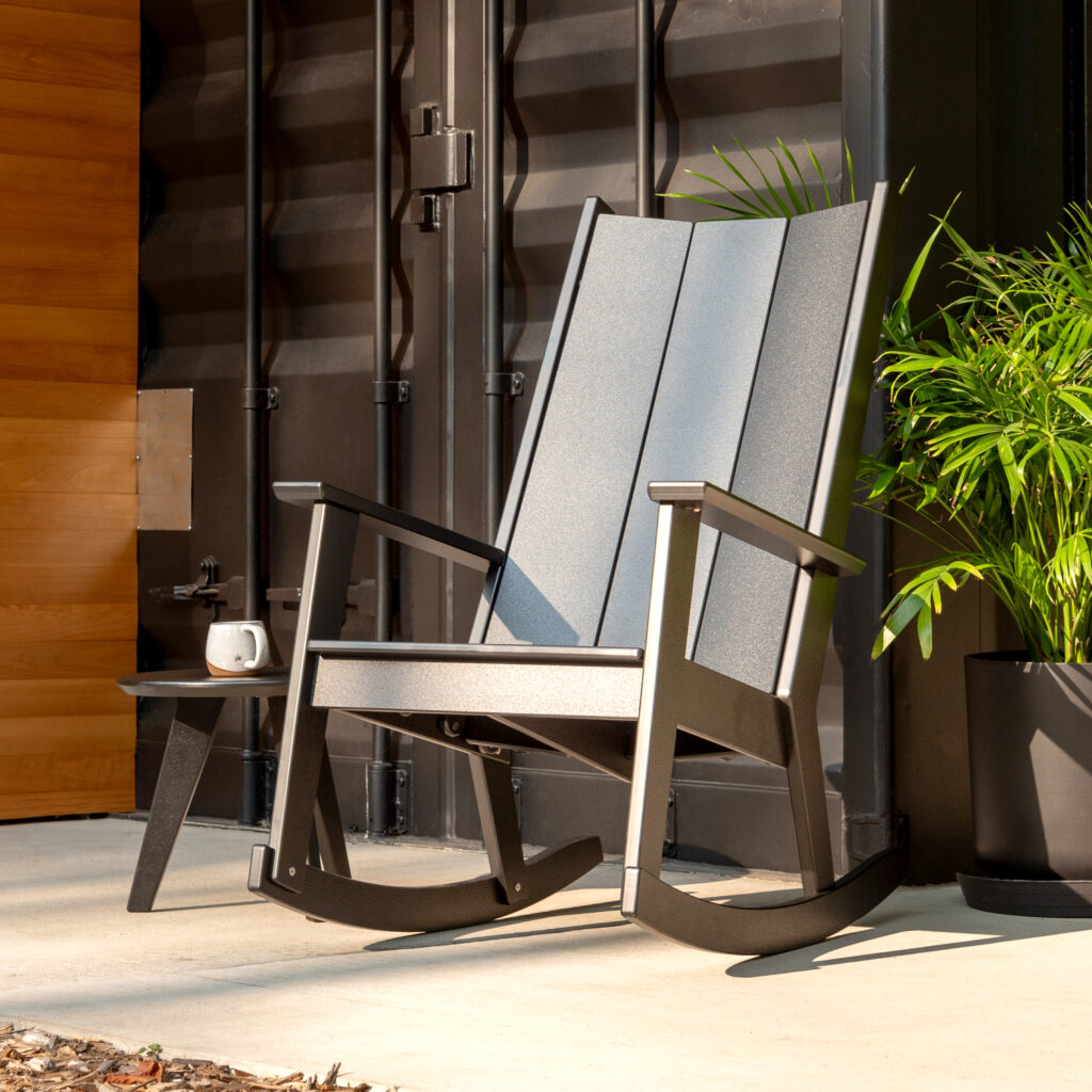 Inspired by the rocking chairs found on the front porches in the Carolinas where there is nothing more peaceful than a light rocking motion in a warm breeze while enjoying the great outdoors, the Fredricksonn Rocking Chair, like our Modern Adirondack Rocking chair, is a new take on a classic outdoor design. Featuring a taller seat height and a more upright sit the Fredricksonn is ready for front porches everywhere.
