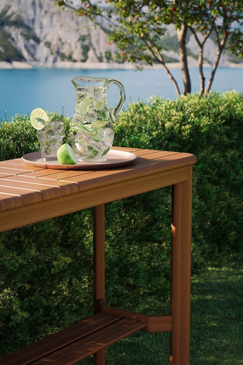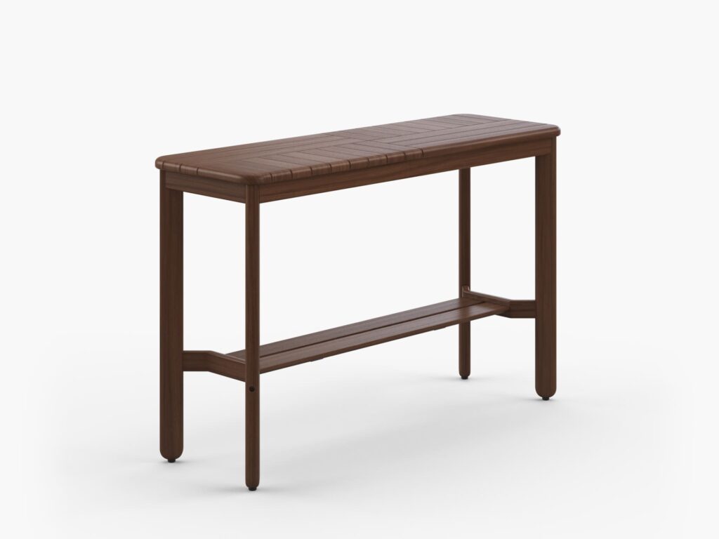 The Mosaic Console Table is a stunning and versatile table. Can be used to set up appetizers or a mini bar. It could also be used to display decorations or plants. Made from durable, sustainably sourced Ipe timber.
