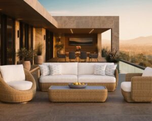 Wicker furniture sets are an interior designer or home decorator’s dream. When most people think of wicker patio furniture, they think of white wicker. But wicker outdoor furniture comes in many colors—including natural wood tones—so you can customize your wicker patio set to fit your home décor. Wicker chairs and wicker chaises often feature outdoor cushions, so you can play with color and pattern on your patio.