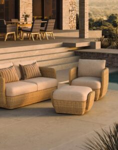 Lightweight and easy to move, wicker outdoor furniture is simple to store during the colder seasons. But wicker furniture’s lightweight lattice is deceptively strong—wicker chairs and wicker chaises can hold a lot of weight.
